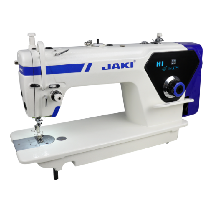 The JAKI H1-7MM  is an industrial single-needle lockstitch sewing machine with a direct servo motor, noted for its quiet operation, durability, and high speed. The similar Juki HZL-H series are household computerized machines known for being easy to use for beginners and advanced sewers.