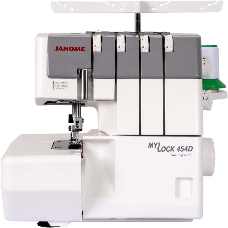 The Janome Mylock 454D is a compact, user-friendly 3- and 4-thread overlocker (serger) designed for professional finishes on a wide range of fabrics. It is suitable for both beginners and experienced sewists and is part of Janome’s “Sailing Line”, known for smooth and quiet operation